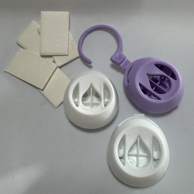 Each box contains two white and one lavender, with five pads. simply apply a few drops of your chosen oil or blend and place where you need it. (I am thinking Fresh Aire for the car, Relax or Sleepytime for the linen closet.)